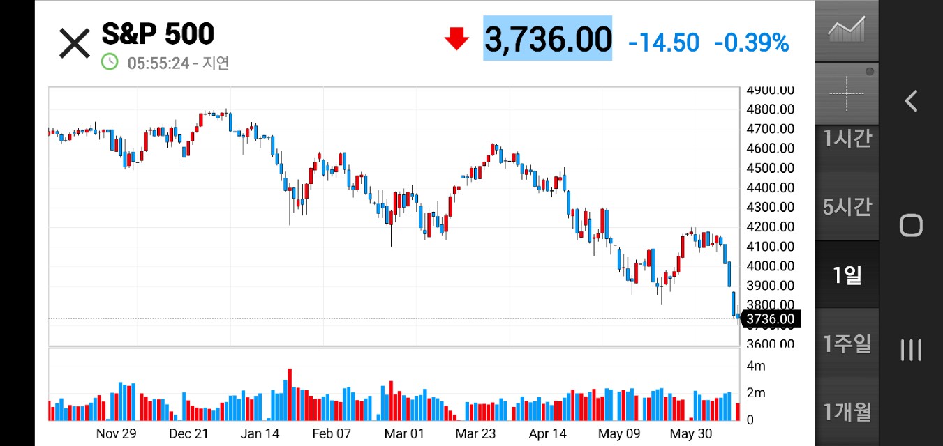 ■ 전일 한국증시마감시점 이후 매크로변화로 본 아침투자환경S&P500선물지수 : -1.55%