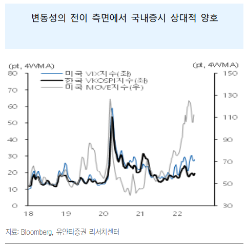최근 시황 특징 중 또 하나는 변동성의 차별화. 채권보다는 주식시장에서, 미국증시보다는 한국증시에서 추세적인 불안 확산이 더딘 모습. 기업이익도 우려에 비해 양호. 당사 유니버스 200종목 기준 2분기 실적은 1분기말 대비 3.1% 상향 조정. 12개월 Trailing PBR 1배 하회. 밸류에이션 부담 완화도 상당히 진행되었다고 볼 수 있다는 판단. 국내증시 지나친 비관 지양할 필요성.
