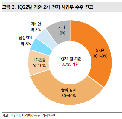 2Q22 영업이익은 3,931억원으로 22.0%QoQ 증가하면서 양호할 전망이다. 자동차 업체가 EV 모델 중심으로 생산을 하고 Gen5 적용 모델 판매가 늘면서 자동차용 배터리 매출액은 2Q22에 20%QoQ 증가할 것으로 기대된다.