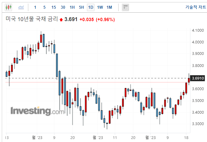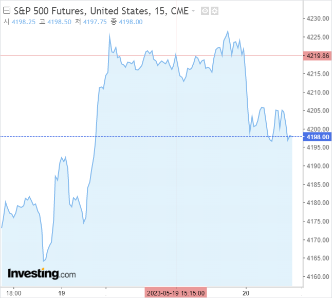 이날 하락폭이 컸던 업종군은 최근 상승을 이끌었던 반도체와 소비재 중심이었는데 대체로 차익실현매물이 유입된데 따른 것으로 추정. 부채한도 협상의 불확실성, 연준의 매파적 발언, 경기침체 이슈 등 부정적 요인이 즐비하기 때문에 차익매물 소화과정으로 인해 상승세가 제한되는 환경.