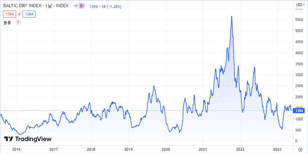 코로나 팬데믹과 러-우 전쟁으로 급등했던 컨테이너선, LNG운반선의 운임 하락으로 5월 ClarkSea 운임지수는 전년비 46%(2.3만달러) 하락했다. 특수의 끝자락에 와있다. 반면 중고선가 지수는 연말 대비 6.2%, 신조선가는 3.9% 상승 전환 했다. 4월까지 전세계 선박발주량은 1,797만CGT로 전년비 44% 감소했다