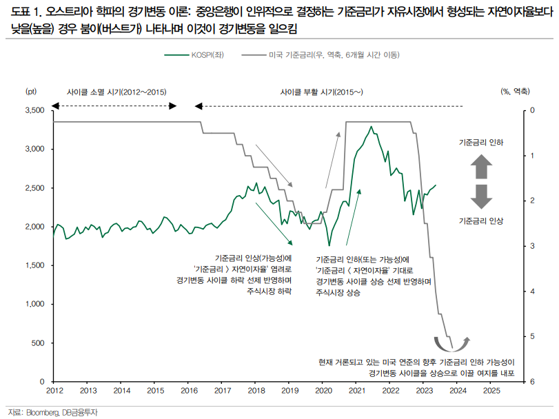 이처럼 지난 기간을 돌아보면, 금융 및 경제에서 사이클이 부활하며 주식시장에 영향을 끼친 것은 결국 오스트리아학파의 경기변동 이론을 여실히 따르는 현상으로 풀이된다. 해당이론에 의하면 중앙은행이 인위적으로 결정하는 기준금리가 자유시장에서 형성되는 자연이자율보다 낮을(높을) 경우 붐(버스트) 이 나타나며 이것이 경기변동을 일으킨다.