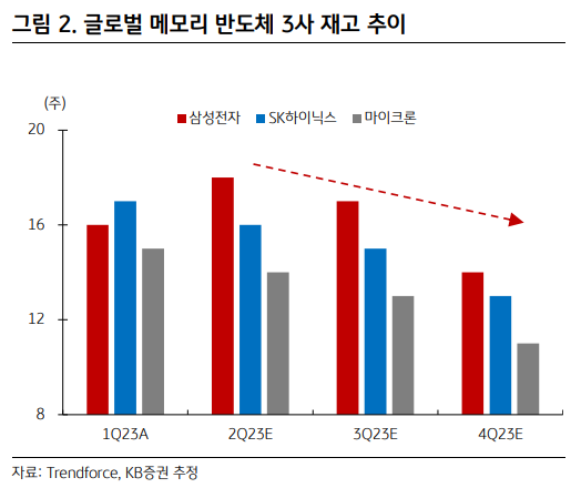 그럼에도 불구하고 한국 반도체 업종에 대한 외국인의 수급은 여전히 주목할 필요가 있음. 금요일 외국인의 순매수가 5,580억이었지만, 삼성전자를 5,293억원 순매수 했음. 그 이전에도 삼성전자와 SK하이닉스 중심으로 순매수가 집중됐는데 이는 반도체 업황바닥 기대, DDR5재고에 대한 긍정적인 소식, AI산업에 대한 기대 등이 유입된 데 따른 것으로 추정. 최근 외국인의 반도체업종 매수는 한국증시를 매수한 점과 반도체 업종 중심의 매수가 혼재하고 있음.