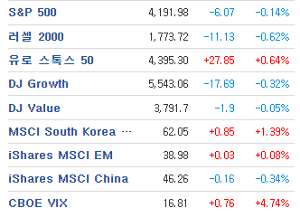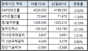 ■ 전일 한국증시마감시점 이후 매크로변화로 본 아침투자환경S&P500선물지수 : -0.52%