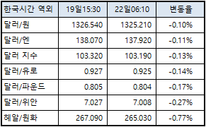 엔화는 달러약세에 강세폭이 확대. 역외 위안화는 미 연준의 금리동결 기대로 달러화가 약세를 보이자 달러대비 0.3% 강세를 보였고, 호주달러도 강세를 보였으나, 브라질 헤알화는 약세를 보이는 차별화 진행.