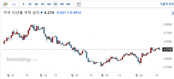 ARM홀딩스(-5.12%), ASML(-2.09%), TSMC(-1.07%), AMAT(-5.23%), 램리서치(-2.76%) 등 올해 강세를 보였던 반도체 장비 업종, 넷플릭스(-1.51%), 월트디즈니(-1.94%)등도 차익 실현 욕구 속 하락.