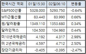 ■ 전일 한국증시마감시점 이후 매크로변화로 본 아침투자환경
