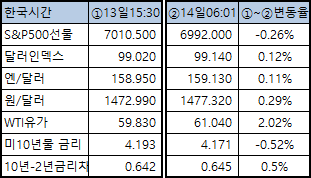 ■ 전일 한국증시마감시점 이후 매크로변화로 본 아침투자환경S&P500선물 : -0.26%