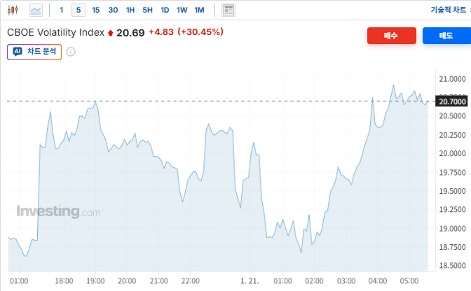 오늘 급격한 매도세로 시장은 다음 거래를 앞두고 불안정한 상태에 놓였음. 높은 변동성과 기술적 손상으로 인해 단기적으로 투자 심리가 위축될 가능성이 높아짐. 투자자들은 21일은 다보스 세계경제포럼에서 트럼프 대통령의 연설을 듣고 21일밤 발표될 경제지표를 기다림ㅇ 뉴욕증시 변화 요인