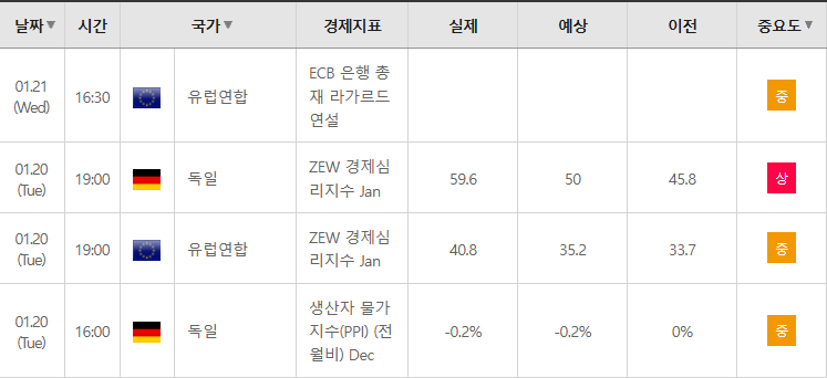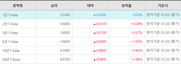 ③ 다보스 포럼(WEF) 트럼프 연설 예정 : 트럼프 대통령은 현지시간 21일 수요일, 다보스에서 특별 연설을 할 예정. 미국 내 주거비 안정(금리 인하 유도 및 모기지 채권 매입 등)과 '미국 우선주의'를 바탕으로 한 투자 유치를 강조할 것으로 예상. 투자자들은 트럼프가 다보스에서 유럽 및 동맹국들을 상대로 얼마나 더 강력한 보호무역주의 메시지를 던질지 예의주시하며 극도로 몸을 사리는 모습.