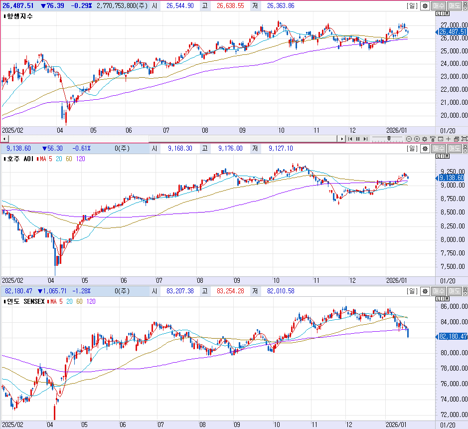 아시아장 중 안전심리 확대는 두가지 원인으로 풀이. 미국의 그린란드 병합정책에 유럽 8개국이 반대하며 병력을 파견하고, 트럼프는 이들 국가에 관세를 부과하고, 유럽은 보유중인 미국 국채를 매도하는 등 갈등이 확대되는 양상. 이와 함께 연방 대법원은 오늘밤(20일) 비공개 대법관 회의를 열고 상호관세 위법성에 대한 결론을 발표할 가능성있다는 월가 분석이 보도된 영향.