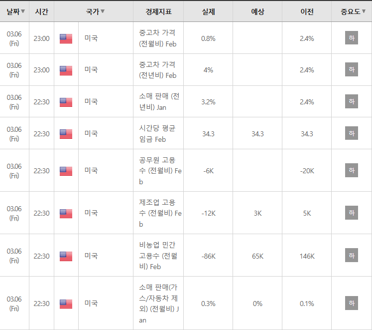 1. 미국 2월 비농업 고용 지표의 예상치 하회 및 일자리 감소