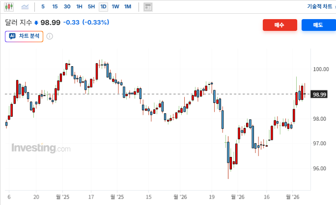 ■ 전일 뉴욕 외환시장ㅇ 달러 인덱스 (99.070 → 98.990, -0.08%)