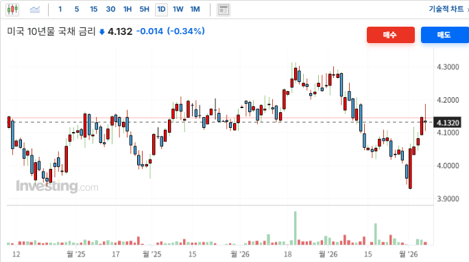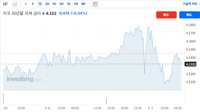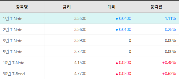 ■ 전일 뉴욕 채권시장 : 미 국채 10년물 금리 (4.146 → 4.132, -0.34%)