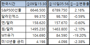 ■ 전일 한국증시마감시점 이후 매크로변화로 본 아침투자환경S&P500선물 : +2.16%