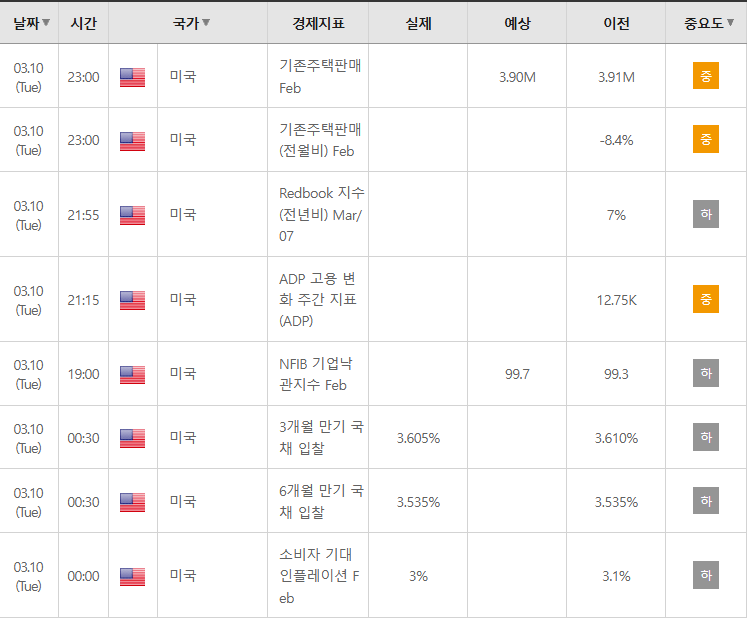 ■ 3월10일 한국증시 변화요인