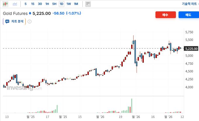 중동 리스크라는 강력한 지지 요인에도 불구하고, 간밤 국채 금리 급등이 무이자 자산인 금의 보유 비용을 높이며 가격하락을 유도. 달러인덱스가 99선을 돌파하는 강세를 보인 점 역시 금값에 하방 압력을 가하며 5,184.71달러로 마감함. 지정학적 리스크보다 금리 급등에 따른 긴축 공포가 시장의 실질적인 유동성 압박 카드로 작용하고 있음을 시사함. 안전자산선호심리가 확대되었음에도 불구하고 금리상승과 달러강세에 금값은 하락