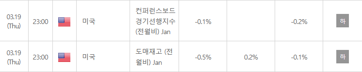 19일 오전 10시, 컨퍼런스보드가 1월 경기선행지수가 0.1% 하락했으며 2026년 GDP 성장률 전망치를 2.0%로 하향 조정한다고 발표함. 해당지표는 중동 전쟁의 본격적인 충격이 반영되기 전의 데이터임에도 불구하고 미국경제의 성장 둔화추세를 경고함. 고물가와 고금리 환경이 소비 및 투자 심리에 미치는 부정적 영향이 가시화되고 있음을 시사함. 장중 반등하던 증시에 경계 매물을 출하시키며 추가 상승 동력을 일부 억제하는 원인이 됨. 지수가 장 후반까지 강한 상승으로 전환되지 못하고 약보합권에서 마감하게 된 요인