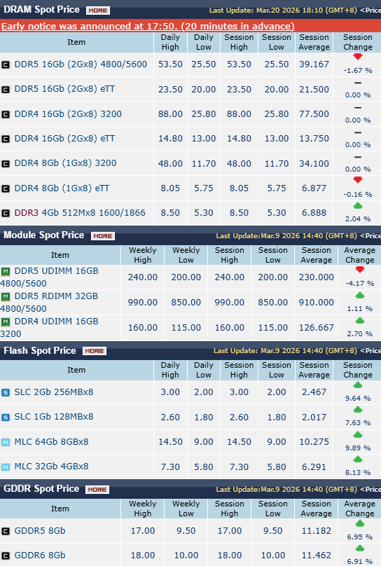 아직까지는 메모리 계약가격 강세가 지속되고 있다. 3월 중순을 기해, 4Q26 계약가격 기준으로 PC DRAM DDR5는 유지, DDR4는 2.9% 추가 상향되었다. 단위 Bit 당 DRAM 계약가격(Price/Gb)은 $2.1까지 전망되고 있는 반면, 동사 컨벤셔널 DRAM 4Q26 ASP/Gb추정치는 $1.6로 향후 추가적으로 상향될 여지가 있다.