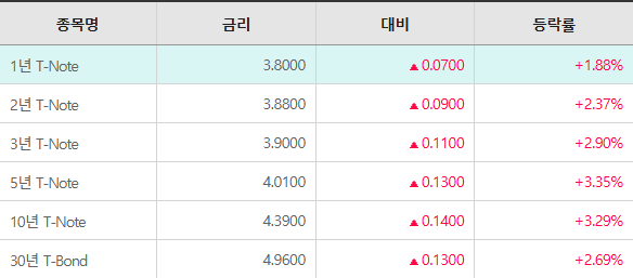 ■ 전일 뉴욕 채권시장 : 미 10년물 국채 금리 4.306 → 4.392 (+0.086p, +2.00%)
