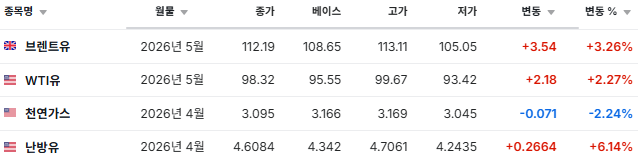■ 전일 뉴욕 상품시장ㅇ WTI 유가: 93.900 → 98.320 (+4.420, +4.71%)
