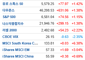 ■ 전일 한국증시마감시점 이후 매크로변화로 본 아침투자환경S&P500선물 : +1.81%