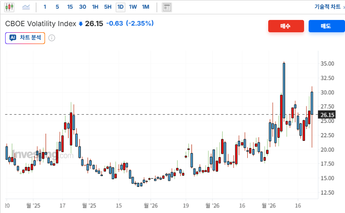 고점 형성 후 6,630선으로 빠르게 밀려나며 상승폭의 상당 부분을 반납함. 이란 외무부와 국회의장 갈리바프가 "미국과 어떠한 협상도 없었다"며 트럼프의 발표를 '시장 조작용 가짜 뉴스'라고 공식 부인함. 협상의 진위 여부에 대한 의구심이 확산되며 투자자들이 차익 실현에 나섰고, '안도 랠리'가 일시적일 수 있다는 불안감이 지수 하락을 유도함.