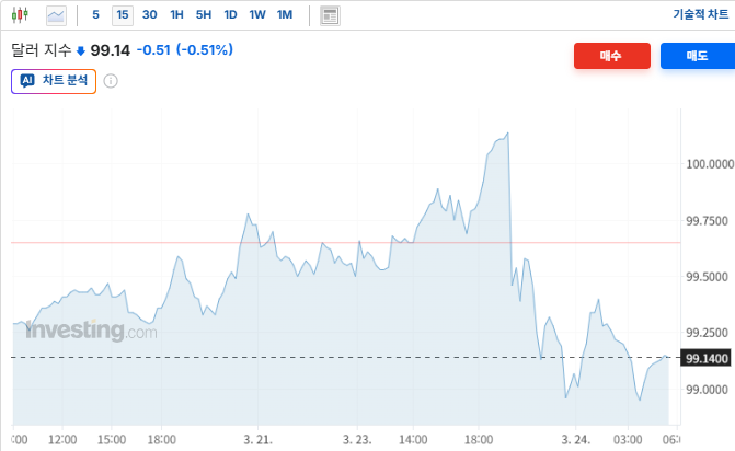 ■ 전일 뉴욕 외환시장ㅇ 달러인덱스: 99.830 → 99.140 (-0.69%)