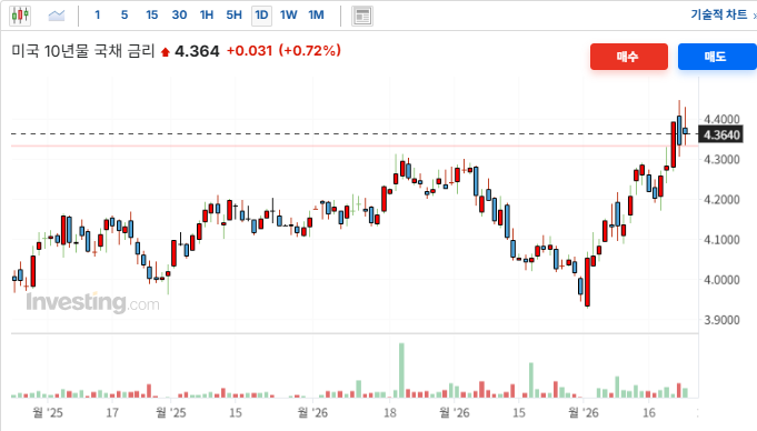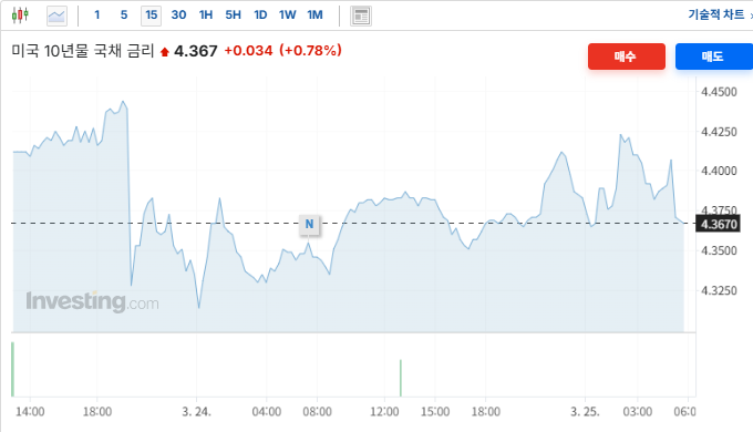 ■ 전일 뉴욕 채권시장 : 미 국채 10년물 금리-0.21% 하락 (4.376 -> 4.367)