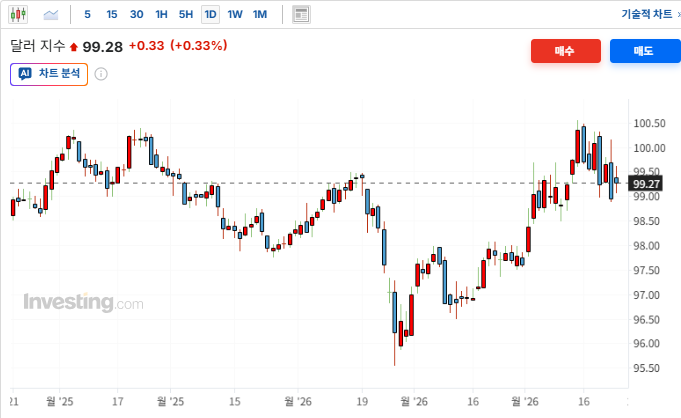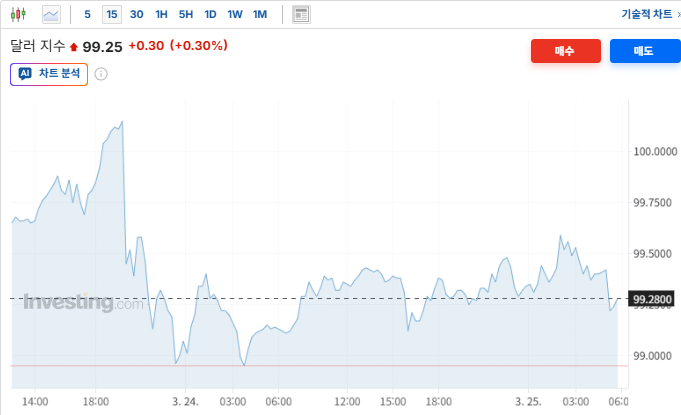 ■ 전일 뉴욕 외환시장ㅇ 달러인덱스: -0.13% 하락 (99.380 -> 99.250)