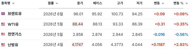 ■ 전일 뉴욕 상품시장ㅇ WTI 유가: -2.98% 하락 (91.220 -> 88.500)