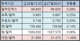 ■ 전일 뉴욕 외환시장ㅇ 달러인덱스: 99.930 (+0.28%)