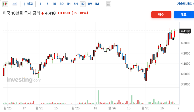 고용시장이 예상보다 견조하게 버티고 있다는 점은 인플레이션 압력을 낮추려는 연준의 입장에서는 '금리 인하를 서두를 이유가 없음'을 뒷받침함. 이로 인해 국채 금리 상승을 자극하고 기술주 중심의 나스닥 지수에 하방 압력을 가하는 원인이 됨. 고용지표의 견조함이 금리상승 및 주가 하락 압력으로 작용