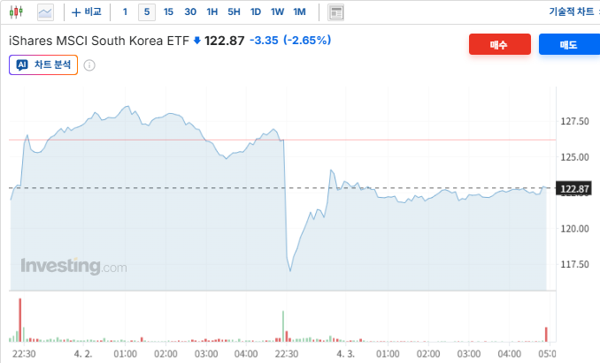 코스피는 +1.33%(5551.69)로 출발후 작은 변동성과 함께 횡보하다가 10:00경 트럼프 연설을 시작하는 시점부터 급락하기 시작하여 15:00경 -5.63%(5170.27)저점기록, 이후 장막판 낙폭을 축소하며 -4.47%(5234.03)로 마감. 코스닥은 +1.25%(1130.16)로 출발과 함께 완만하게 하방진행하다가 10:00경 +0.49%에서 트럼프 연설을 시작하는 시점부터 급락하기 시작하여 15:00경 -6.81%(1040.2)저점기록후 장막판에 낙폭을 축소하며 -5.36%(1056.34)로 마감.