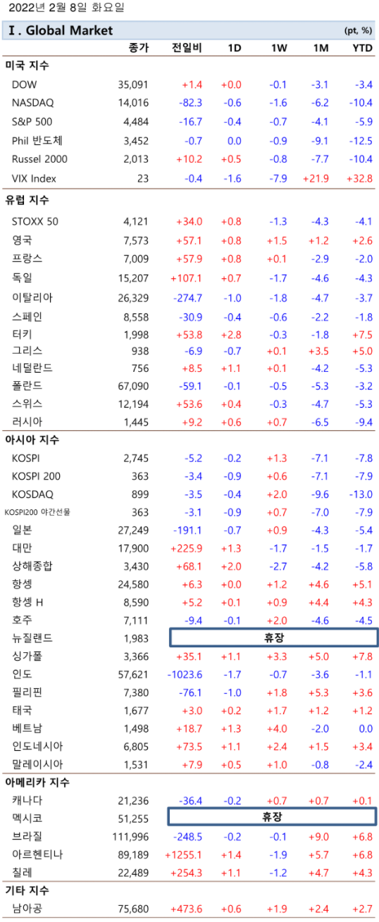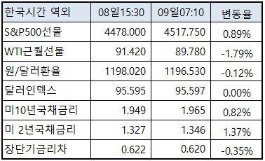 이를 감안 한국증시는 0.5% 내외 상승출발 할 것으로 전망되는데, 전일 변동성 확대요인 중 하나인 미 국채 금리의 상승폭이 시간외로 확대되지 않는다면 전일과 달리 상승세를 이어갈 것으로 전망.