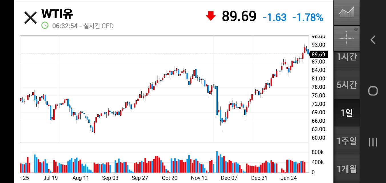 물가 상승이 경제와 금융시장에 부담이 되는 상황이 지속되고 있다. 여기에 더해 국제유가가 배럴당 $90 대로 상승했다.