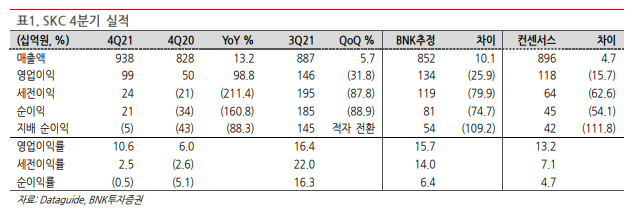 ㅇ 4Q21 시장컨센서스 소폭 하회하는 영업이익 기록