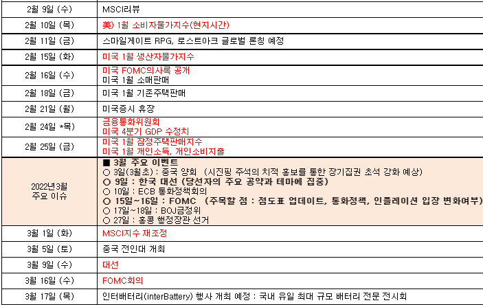최근 유가 상승, 오미크론 변이 바이러스로 일부 지표의 둔화 폭이 확대되었음을 감안하면 2022년 1월에도 스태그플레이션 압력은 높아졌을 것으로 추정된다.
