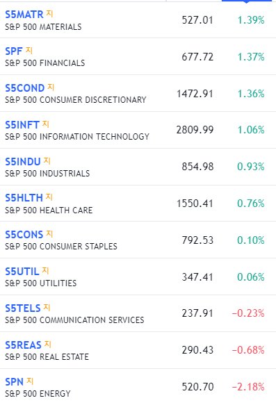ㅇ 섹터&업종&종목 : 반도체, 금융, 여행, 레저 강세 Vs. 에너지 부진