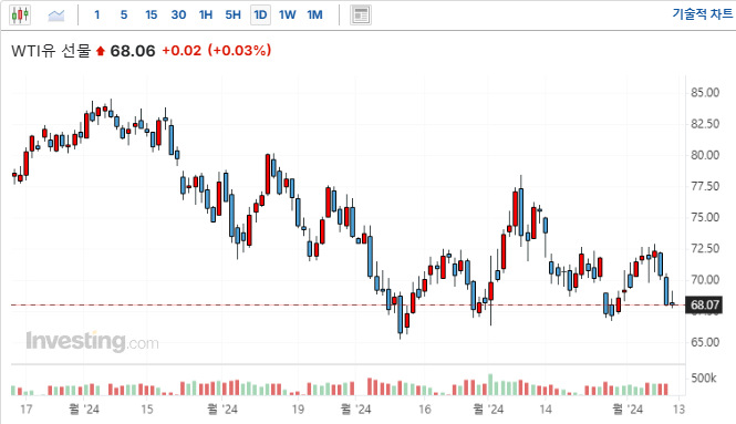 국제유가는 OPEC이 수요 증가 추정치를 하향했고 최근 중국 경기 부양책에 대한 실망이 있었음에도 최근 하락에 따른 반발 매수세가 유입되며 보합권 등락.